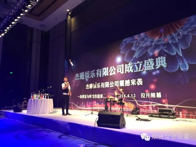 2016年4月12日星期二下午17:00,由聊城商会发起的“杰曦娱乐有限公司成立盛典活动”在烟台市万达文华大酒店一楼宴会厅拉开帷幕。